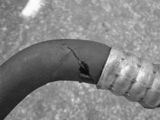 これが、今回漏れた箇所、、ぱっくり行ってます、、 上り側も怪しい感じ、、。